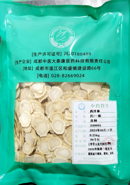 商品名称:西洋参片/一级/0.25kg/袋