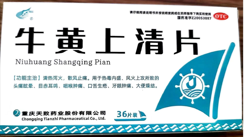 商品名称:牛黄上清片0.3g/片*18片/板*2板/盒