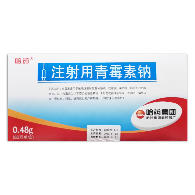 商品名称:注射用青霉素钠80万U/支(0.48g)